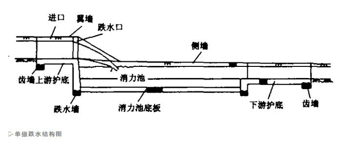 單級跌水:在落差較小的情況下,一般3~5m的落差時,采用單級跌水。
