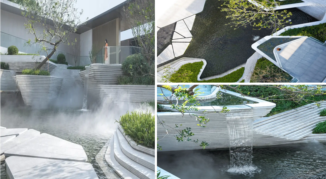 4.多點式:出水口以多點或陣列的方式布局,形成規模較大的跌水景觀。