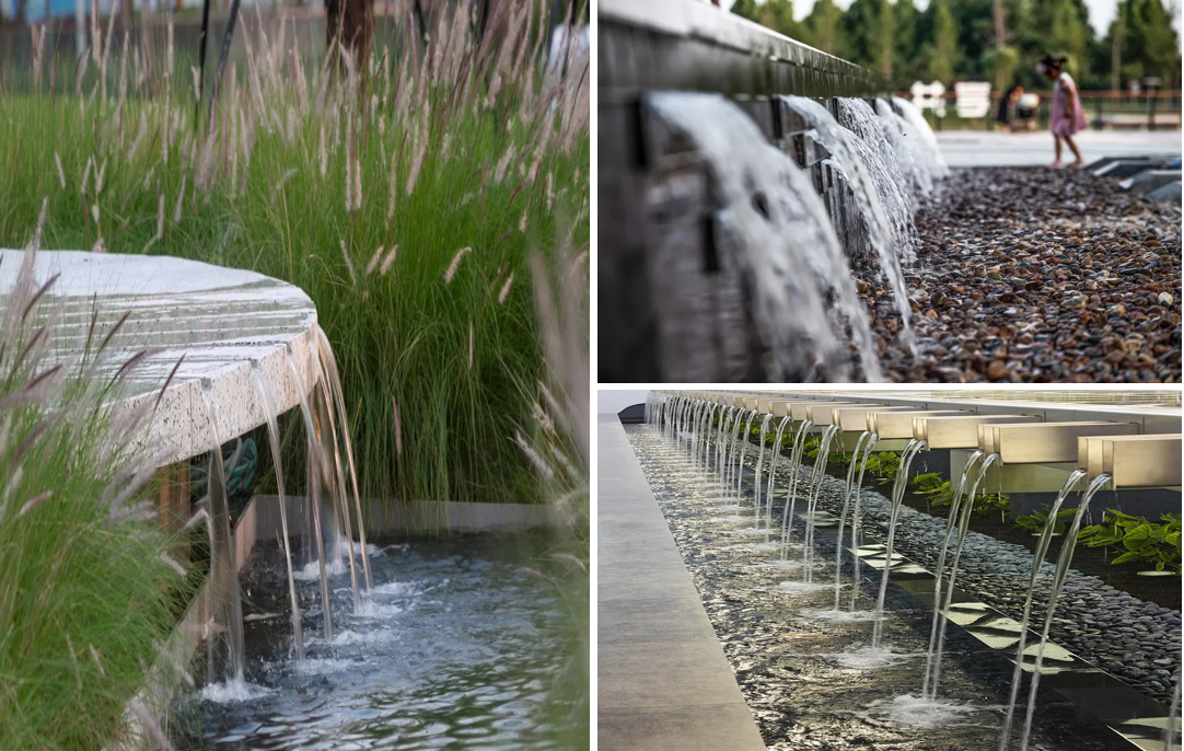1.隱蔽式:將出水口隱藏在景觀環境之中,讓水流呈現自然瀑布的形狀。