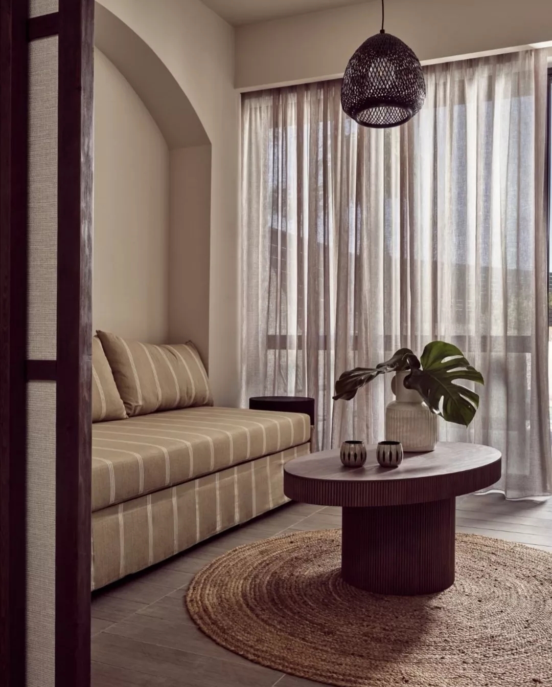 與 Royal Senses 的現代方式不同,Studio Lost 在 Numo Ierapetra 大量采用更為原始自然的元素,如繩索、植物、藤編、原木、陶器、手工織物等,處處強調這是一處注重自然與溫度的地方。