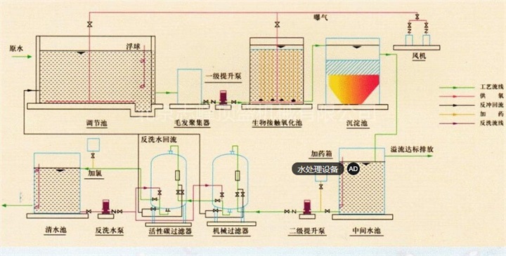 在進水泵的吸水管段投加絮凝劑,絮凝劑和原水通過水泵葉輪攪拌作用將兩者快速均勻混合,并和原水中的細小懸浮物和膠體物質進行微絮凝反應。原水經增壓后進入 QXGL高效纖維球過濾器內部布水結構進行均勻布誰,絮凝反應后的原水通過濾床,大量的微絮凝體被截留。剛開始過濾的出水濁度一般達不到要求,這時的出水叫正洗排水,正洗排水經管道排放處理。正洗排水要及時進行檢驗,待出水濁度達到標準后,切換閥門,將合格水送至清水池或其他管路。直到過濾水頭損失叨叨設定值或達到設定的過濾時間或出水濁度不合格為止,即是一個過濾周期。此時必須進行反沖洗。反洗時,清水由反洗水泵戲入,經過過濾器底部,由下至上對濾床進行松動1-2min,而后停止水洗改為氣洗3-5min,再氣水同時反洗8-10min,最后水洗3-4min,整個反洗過程約20min。反洗結束,重新進行過濾。公司主營業務: