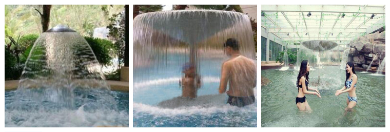 利用水傘四周下落的強勁水流沖擊上半身,特別是頸部,屬于柔性壓力。也可以坐于傘下,呼吸富含氧氣的水霧狀清新空氣,使思緒更加清醒,周密。而且,透過水簾看外面的世界別有一番風味。