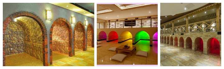 窯洞汗蒸房是汗蒸房中最受歡迎的一種特色房,造型獨特,充滿趣味,一個個窯洞可以盡情嬉戲玩耍,小朋友們最喜歡在里邊躲貓貓,成年人則可以靜靜享受汗蒸的樂趣。